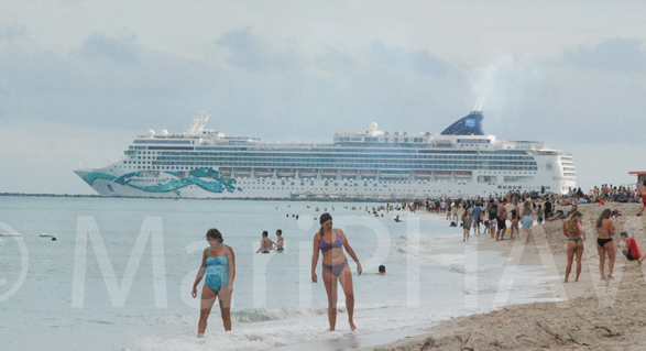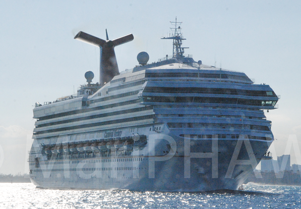 She’s certainly pushing some water as this cruiseship clears the Port of Miami for a destination that’s unknown / Perhaps it’s going out on an extended worldie / Oh Captain, I’m available for the best lookout you’ll ever have ON DECK /