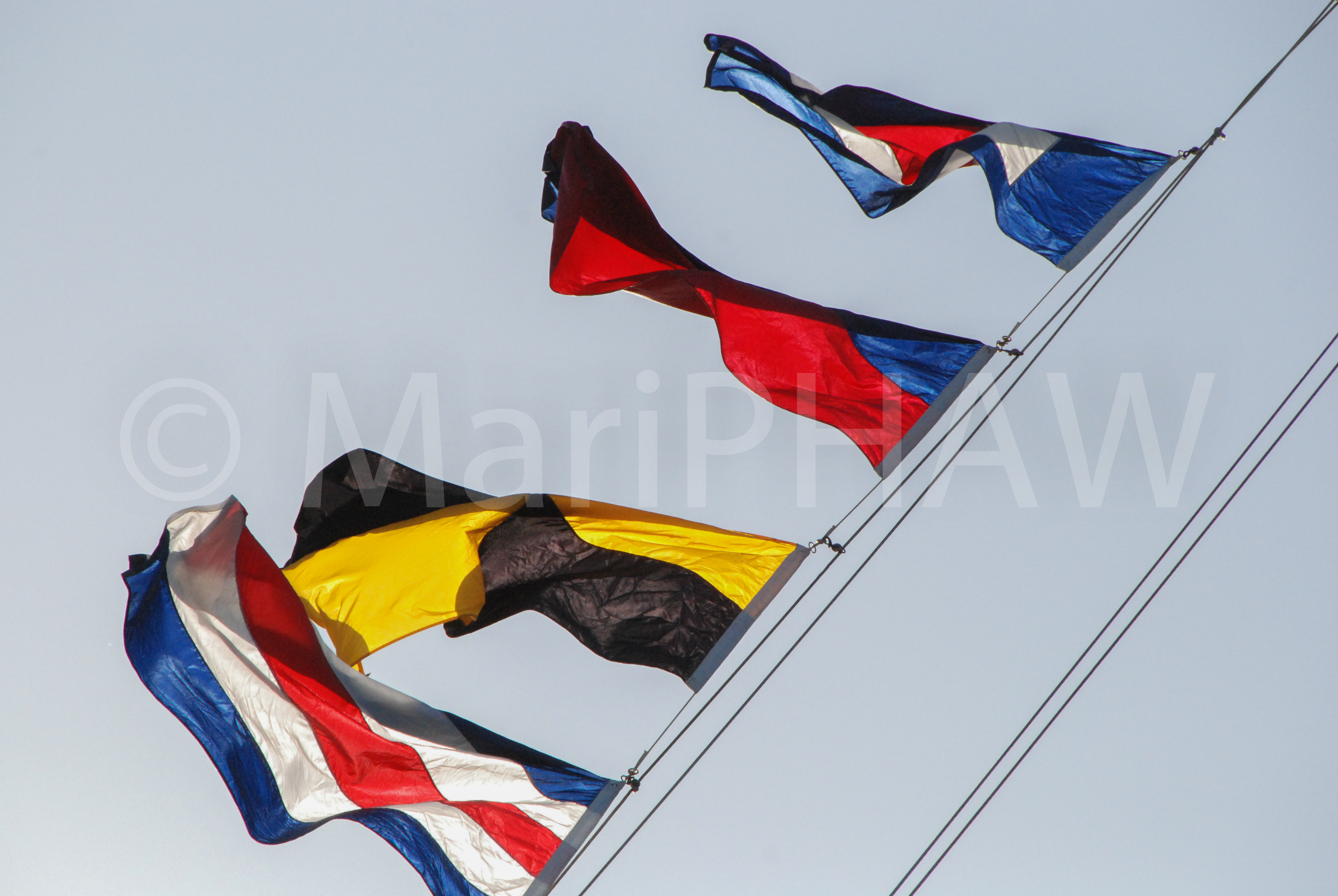 Love those flags / To see them blowing in a gentle breeze on sailing day meant that the QUEEN MARY was fully dressed and about to go / However, not before a Maritime Historian accessed her weathered teak decks /